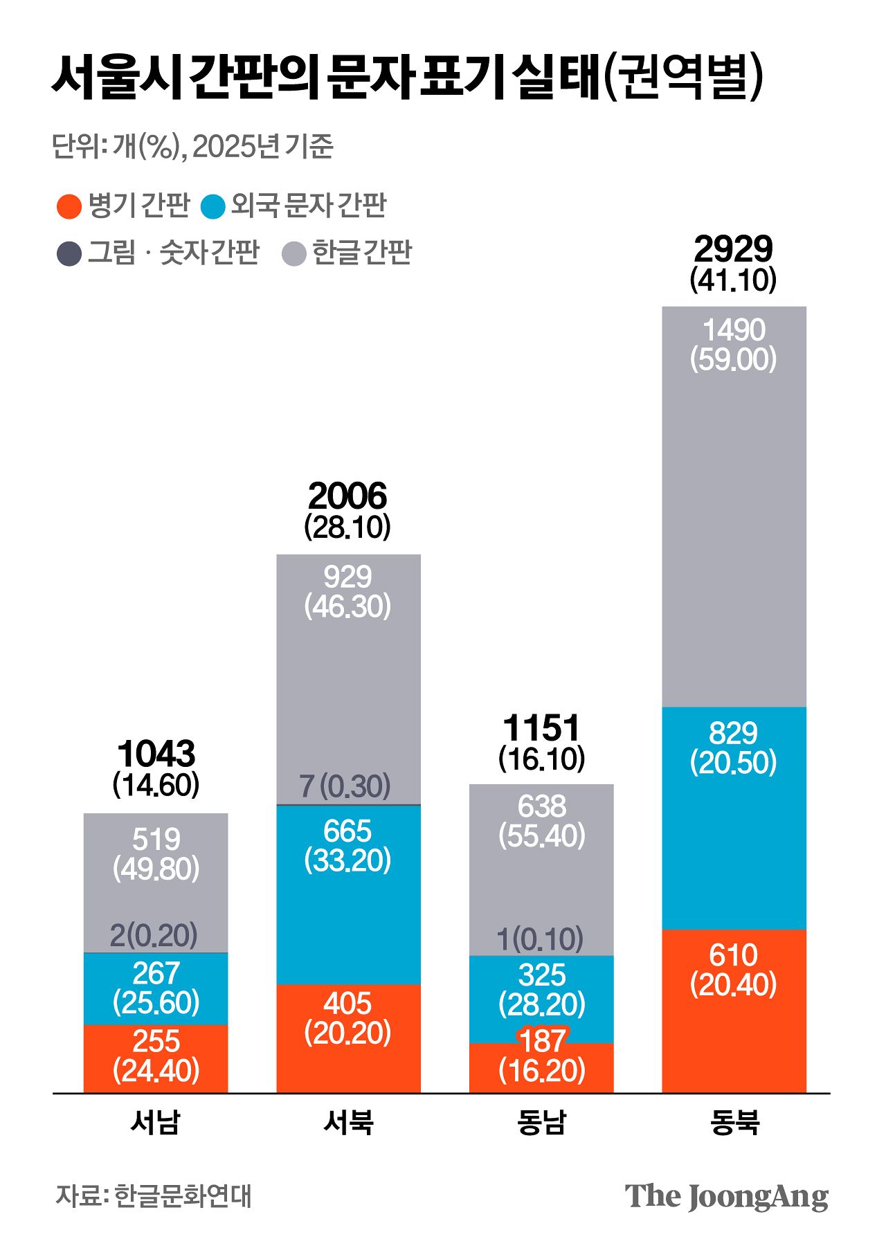 또한 한글문화연대의 ‘2025년 서울시 옥외광고물 한글 표기 실태조사’ 보고서에 따르면,
