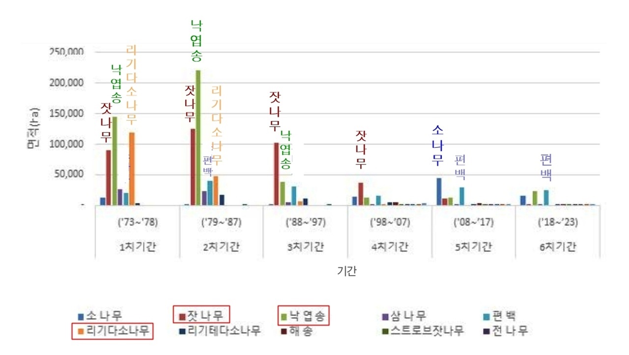 결국 지난 65년 동안 산림청이 조림해온 나무 중