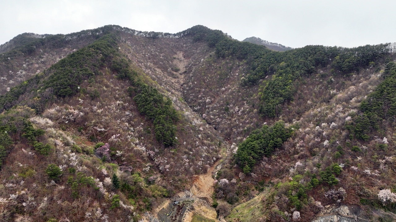 4번 사진에 하얀 점들이 보인다. 산벚꽃이 활짝 핀 모습이다.