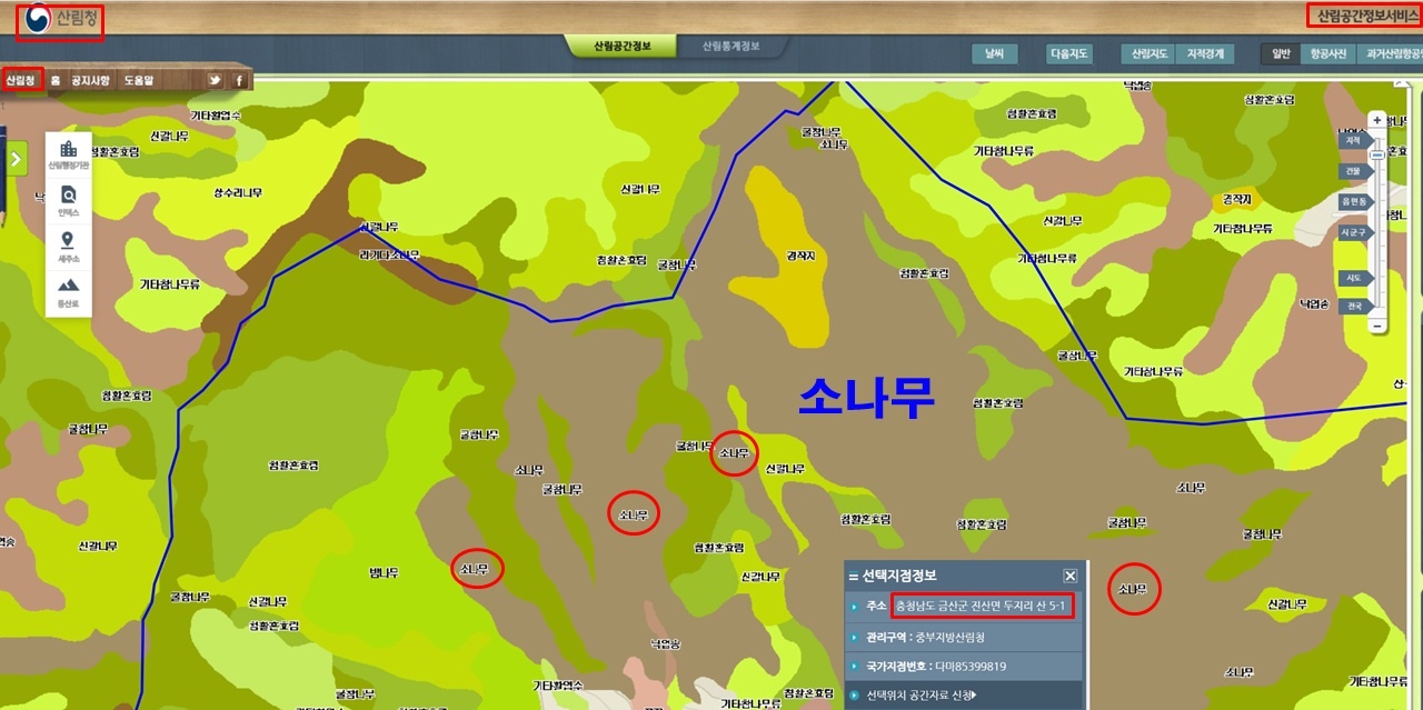 문제는 산림청의 'FGIS 산림공간정보서비스'였다.