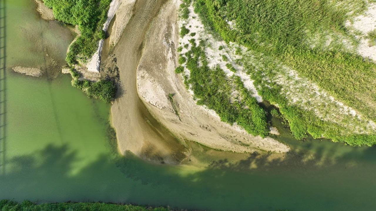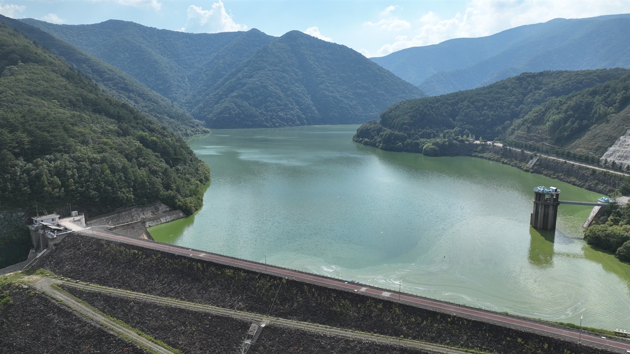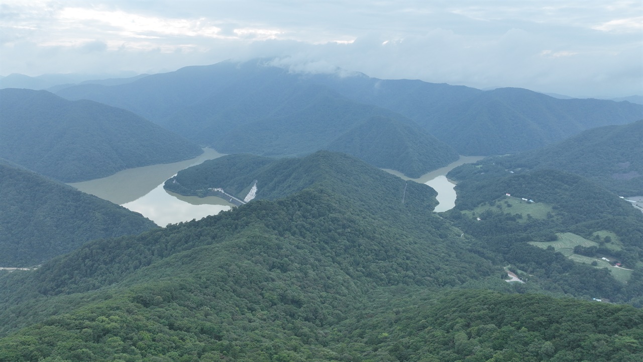 드론으로 내려다본 댐 하부는 마치 사람 손으로 그려 놓은 듯 아름답게 뽐내고 있다.