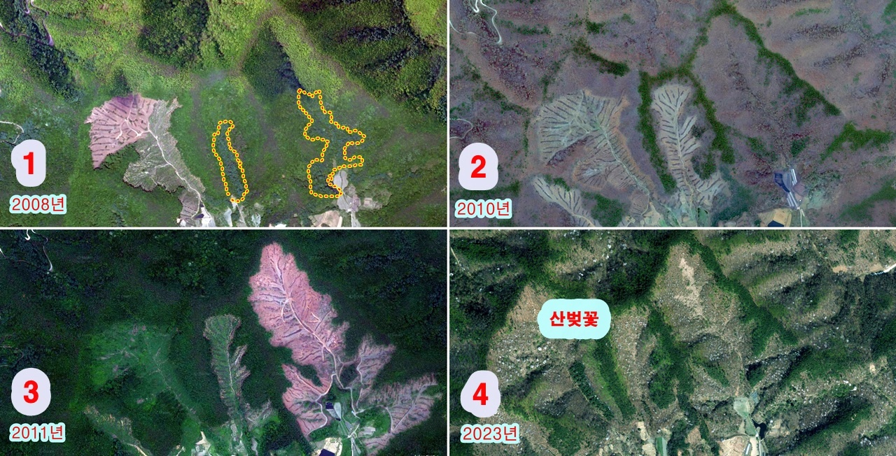 앞으로 고사될 나무들을 조림하며 임도와 사방댐 공사로 또 다른 이익을 챙겨 온 셈이다.