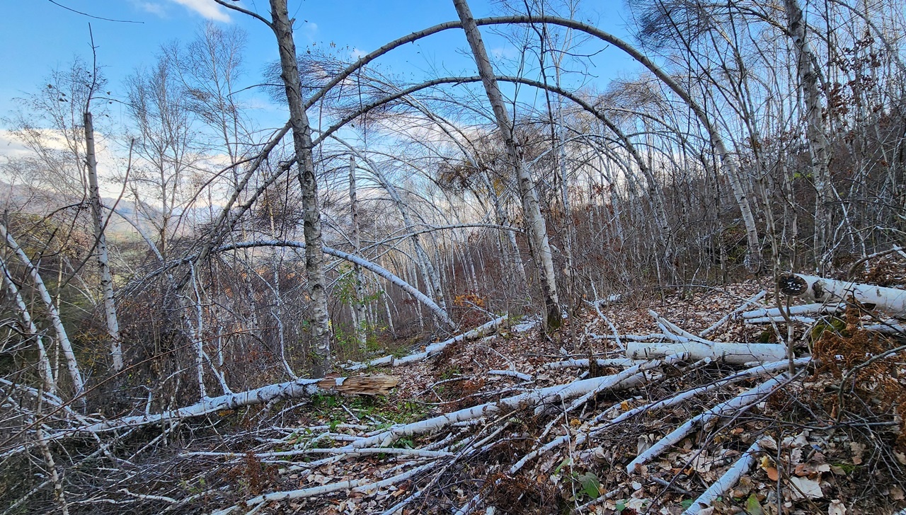 평창, 횡성, 홍천, 원주, 용인 등 전국의 자작나무들이 허리가 굽어 있다.