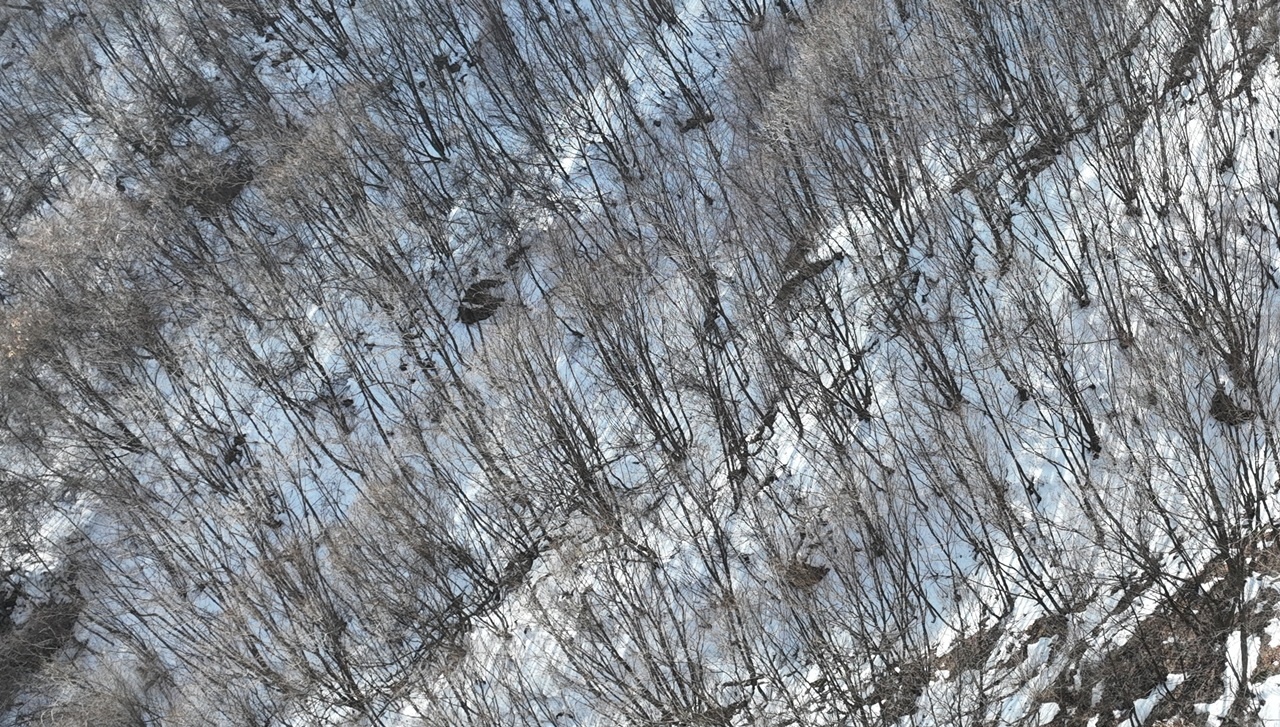 눈이 내린 지난 2월 삼봉산 현장을 찾아갔다. 산림청의 'FGIS' 지도에 표기된 자작나무가 없다.