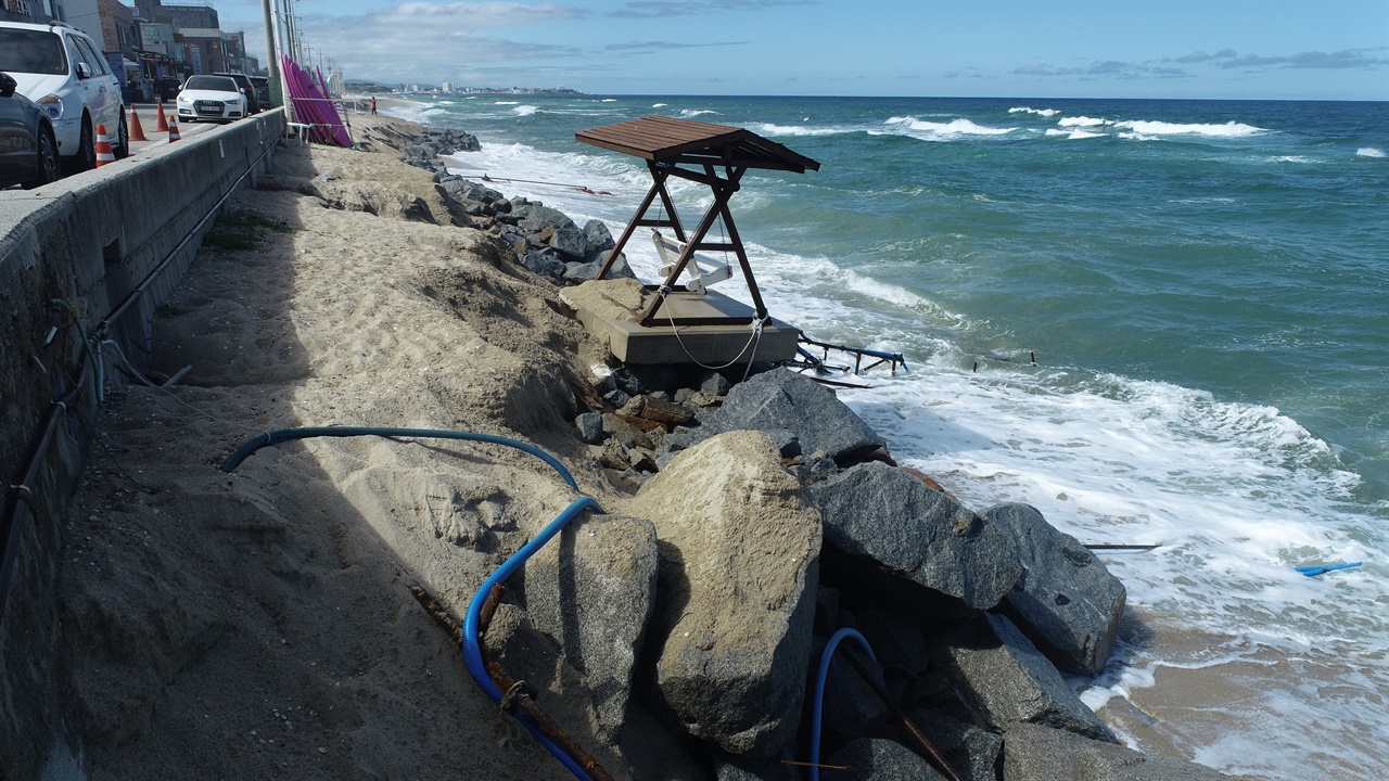 붕괴 직전의 상태에 놓여 있다. 지반이 약화된 해안도로 역시 하부가 노출돼,